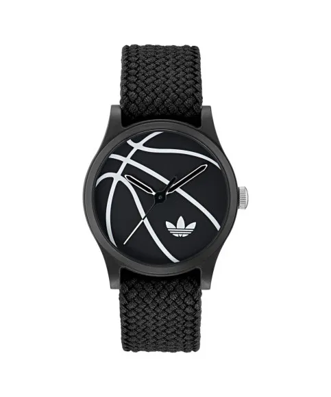Stap in de wereld van precisie en stijl met de Adidas Originals® Analogue 'Game One' Unisex Horloge AOSY25024. Ontworpen voor degenen die zowel functionaliteit als esthetiek waarderen, is dit horloge de ideale fusie van sport en verfijning. De zwarte resin kast, met een diameter van 39mm en een dikte van slechts 9mm, biedt een slank en duurzaam frame dat comfortabel om de pols past. Het horloge heeft een opvallende zwarte wijzerplaat, beschermd door hoogwaardig plexiglas, wat ervoor zorgt dat je zicht op de tijd zowel helder als krasbestendig is. Uitgerust met een betrouwbare quartz-movement, biedt de 'Game One' nauwkeurige tijdsregistratie voor jouw drukke levensstijl. De analoge weergave presenteert de tijd in een klassiek formaat, aangevuld met een functionele en stijlvolle zwarte nylon band die zich uitstrekt tot 21cm, waardoor het horloge voor bijna elke polsmate verstelbaar is. Met een breedte van 22mm, verhoogt de band niet alleen het comfort, maar voegt ook een eigentijdse uitstraling toe aan het ontwerp van het horloge. Dit unisex-horloge heeft een waterdichtheid van 5 bar, waardoor het geschikt is voor dagelijkse activiteiten, of je nu gaat hardlopen of je dagelijkse taken vervult. Een gespsluiting zorgt ervoor dat het horloge veilig om je pols blijft zitten, terwijl het een vleugje elegantie toevoegt aan een verder sportief ontwerp. De algehele constructie van het Adidas Originals horloge legt de nadruk op zowel stijl als functionaliteit, waardoor het een perfecte keuze is voor trendsetters en actieve individuen.Koop Adidas Originals® Analogue 'Game One' Unisex Horloge AOSY25024 bij Ormoda