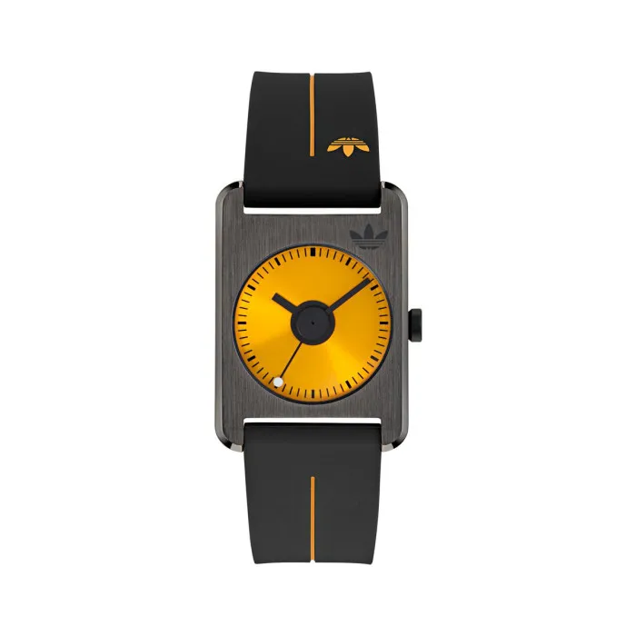 De Adidas Originals® Analogue 'Retro Pop One' Unisex's Watch AOST24544 is een opvallend voorbeeld van casual elegantie die levendige stijl combineert met blijvende functionaliteit. Dit unieke stuk van het gerenommeerde merk Adidas Originals vangt de geest van het retro-tijdperk met een speelse twist. Het horloge is ontworpen voor degenen die een modieus accessoire waarderen dat geen concessies doet aan kwaliteit. Gemaakt van duurzaam roestvrij staal, voegt de rechthoekige kast met een diameter van 32mm en een dikte van 9mm een modern randje toe aan elke outfit. De gedurfde gele wijzerplaat voegt een vleugje kleur toe aan je pols, beschermd door stevig mineraalglas dat zorgt voor zichtbaarheid en duurzaamheid. Of je nu in een vergadering bent, bij een informele brunch of geniet van een ontspannen avondje uit, dit veelzijdige tijdpiece zal je look moeiteloos aanvullen. Dit uniseks horloge heeft een betrouwbare kwartsbeweging, zodat je altijd op tijd bent. De zwarte siliconen band, die tot 21cm in lengte reikt, biedt een comfortabele pasvorm en wordt vastgezet met een klassieke gespsluiting. Met een kastlengte van 42mm en een breedte van 31mm is dit horloge beheersbaar maar onderscheidend, perfect voor dagelijks gebruik. Het horloge heeft een waterbestendigheid tot 3 bar, waardoor het geschikt is voor spetters en lichte regen. De Retro Pop One is ideaal voor iedereen die een stijlvol en functioneel accessoire wenst, waardoor het een must-have toevoeging aan je horlogecollectie is.Koop Adidas Originals® Analogue 'Retro Pop One' Unisex's Watch AOST24544 bij Ormoda