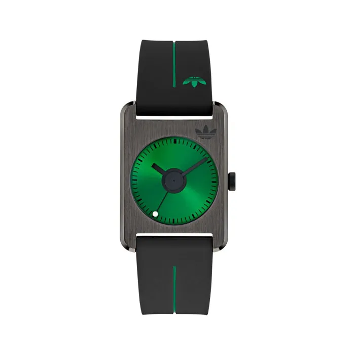 Met de Adidas Originals® Analogue 'Retro Pop One' Horloge AOST24546, beleef je de perfecte combinatie van stijl en functionaliteit. Dit horloge heeft de iconische Adidas-energie en een slim ontwerp dat het gevoel van individualiteit en sportiviteit vastlegt. De robuuste zwarte roestvrijstalen kast heeft een rechthoekige vorm, wat zorgt voor een moderne uitstraling, terwijl de levendige groene wijzerplaat een kleuraccent toevoegt aan je dagelijkse look. Dit unisex horloge, met zijn casual stijl, is ideaal voor iedereen die zowel mode als praktische toepasbaarheid waardeert in zijn accessoires. Met een kastdikte van slechts 9 mm en een diameter van 32 mm zit het horloge comfortabel om de pols, waardoor het geschikt is voor zowel informele uitjes als actieve avonturen. Het quartzmechanisme garandeert nauwkeurige tijdsweergave, zodat je nooit een seconde mist, of je nu aan het werk bent of aan het spelen. Het duurzame mineraalglazen horlogeglas beschermt tegen krassen en houdt het horloge in topconditie. De robuuste siliconen band met een lengte van 21 cm en een breedte van 21 mm zorgt voor de hele dag comfort, waar je ook heen gaat. De gesp sluiting zorgt voor een veilige pasvorm, terwijl het horloge waterdicht is tot 3 bar, wat perfect is voor de momenten dat je onderweg bent. De Retro Pop One is niet alleen een horloge; het is een uiting van je levensstijl.Koop Adidas Originals® Analogue 'Retro Pop One' Unisex's Watch AOST24546 bij Ormoda