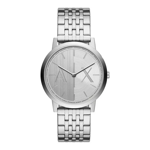 Ontdek de Armani Exchange® Analogue 'Dale' Herenhorloge AX2870, jouw ideale metgezel voor een casual maar verfijnde uitstraling. Dit stijlvolle uurwerk is ontworpen voor de moderne man die zowel stijl als functionaliteit waardeert. Met een elegante constructie van roestvrij staal straalt het Dale-horloge met zijn opvallende zilveren kast en band een gevoel van vertrouwen en elegantie uit. De ronde kast heeft een diameter van 40mm en een dikte van 6mm, waardoor hij licht en comfortabel om de pols zit. Uitrusting met een betrouwbare quartz beweging zorgt voor nauwkeurige tijdsweergave, cruciaal voor de drukbezette professional. De zilveren wijzerplaat heeft een duidelijk ontwerp, beschermd door duurzaam mineraalglas, wat het zowel praktisch als stijlvol maakt. De horlogeband van 21cm lang en 20mm breed is beveiligd met een vouwsluiting met een drukknop voor extra gemak. Met een waterbestendigheid van 3 bar is het Dale-horloge ideaal voor dagelijks gebruik, of je nu op kantoor bent of een casual avondje uit gaat. Beleef tijdloze elegantie gecombineerd met hedendaags design met het Armani Exchange 'Dale' horloge, een must-have in de collectie van elke gentleman.