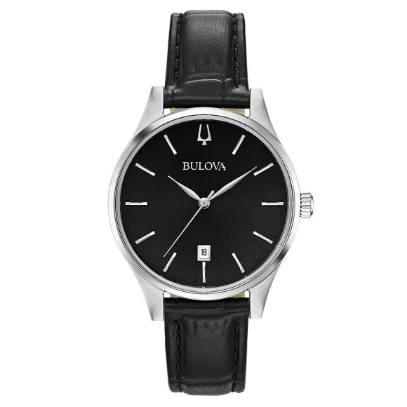De Bulova® Analogue 'Classic' Dameshorloge 96M147 is een opmerkelijke belichaming van elegantie en functionaliteit die moeiteloos je stijl zal verbeteren. Met een opvallende zwarte wijzerplaat in een zorgvuldig ontworpen ronde roestvrijstalen kast is dit horloge perfect voor de veeleisende vrouw die zowel eenvoud als verfijning waardeert. Het horloge beschikt over een quartz beweging, die bekend staat om zijn precisie en betrouwbaarheid, zodat je altijd op tijd bent, waar het leven je ook naartoe brengt. Met een diameter van 35 mm heeft de kast een slanke dikte van 9 mm, wat het een optimale keuze maakt voor veelzijdig gebruik, of je nu formele kleding of casual ensembles draagt. Het verfijnde mineraalglazen wijzerplaatvenster beschermt het horloge niet alleen tegen krassen, maar draagt ook bij aan de verfijnde esthetiek. Met zijn klassieke uitstraling voegt de zwarte leren band een vleugje zachtheid toe, met een breedte van 14 mm en een lengte van 19 cm voor een comfortabele pasvorm om je pols. De gespsluiting zorgt voor een gemakkelijke draagervaring en biedt tegelijkertijd een veilige grip gedurende de dag. Bovendien beschikt het horloge over een kalenderfunctie om je georganiseerd en goed geïnformeerd te houden. Met een waterbestendigheid van 3 bar is dit horloge perfect voor het dagelijks leven en zorgt het ervoor dat het bestand is tegen spetters en kortdurende onderdompeling. Maak een statement met dit tijdloze accessoire en laat je verfijnde smaak en aandacht voor detail zien. De Bulova® Analogue 'Classic' Dameshorloge is niet alleen een tijdpiece; het is een afspiegeling van je stijlessentie.Koop Bulova® Analogue 'Classic' Dameshorloge 96M147 bij Ormoda