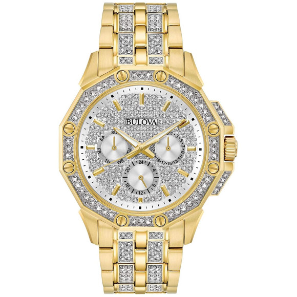 Bulova heeft de ontwikkeling van uurwerken getransformeerd door hun innovatieve geest en technische uitmuntendheid. Met meer dan een eeuw expertise heeft Bulova zich gevestigd als een voorloper in de horloge-industrie, waarmee ze de grenzen verleggen van wat mogelijk wordt geacht in de wereld van tijd. Of het nu door de allereerste gesynchroniseerde tijdsnormen heen breekt of door verfijnde uurwerken met een uniek design te creëren, Bulova's nalatenschap is er een van vooruitgang en tijdloze elegantie.Over Bulova® Multi Dial 'Crystal Octava' Herenhorloge 98C126