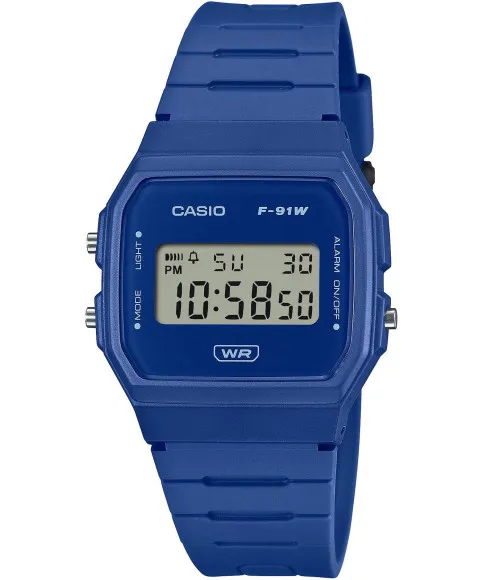 De Casio® Digital 'Casio Collection' Unisex Horloge F-91WB-2A1EF is een typisch exemplaar in de wereld van casual horloges. Het slanke en praktische ontwerp toont een elegante blauwe harskast met een lengte van 38 mm en een breedte van 34 mm, met een dikte van slechts 8 mm, waardoor het zowel licht als comfortabel is om de hele dag te dragen. Met precisie vervaardigd, beschikt dit horloge over een duurzame digitale weergave, beschermd door mineraalglas, dat zorgt voor zichtbaarheid en veerkracht tegen dagelijkse slijtage. De verbluffende blauwe wijzerplaat sluit perfect aan bij het algehele ontwerp en maakt het een opvallend accessoire. Uitgerust met een kwartsbeweging, garandeert het horloge een nauwkeurige tijdregistratie, ideaal voor wie een druk leven leidt. De dag-datum kalenderfunctie zorgt ervoor dat je altijd op schema bent, wat de functionaliteit van het horloge vergroot. De casual stijl wordt aangevuld met een blauwe plastic band die tot 20 cm uitrekt, ontworpen om comfortabel om elke pols te passen. De band heeft een breedte van 21 mm en beschikt over een veilige gespsluiting, zodat het horloge stevig op zijn plaats blijft terwijl je je dagelijkse activiteiten onderneemt. Geschikt voor iedereen, is dit unisex horloge veelzijdig genoeg voor zowel mannen als vrouwen, en past het moeiteloos bij elke outfit, of deze nu casual of sportief is. De waterbestendigheid tot 3 bar biedt extra betrouwbaarheid en zorgt ervoor dat je het zonder zorgen in het dagelijks leven kunt dragen. De Casio Collection weerspiegelt een erfgoed van innovatie en kwaliteit, en is gericht op degenen die zowel stijl als functionaliteit in hun accessoires waarderen.