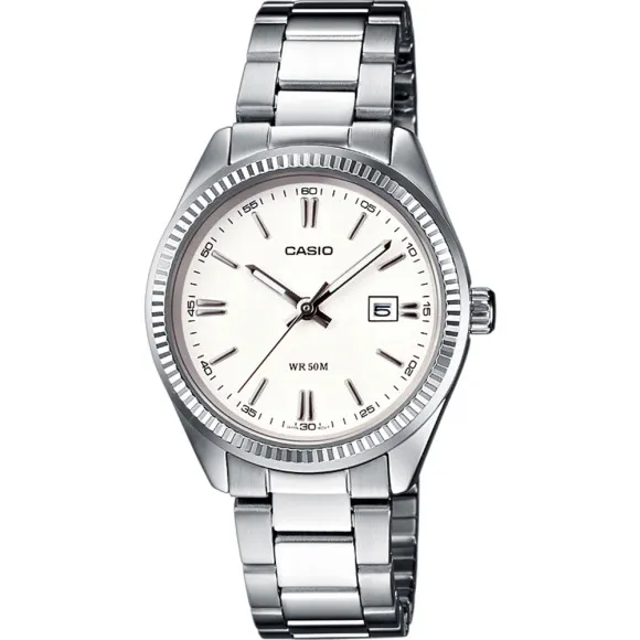 Introductie van de Casio® Analogue 'Collection' Dameshorloge LTP-1302PD-7A1VEG, een harmonieuze mix van elegantie en functionaliteit, ontworpen voor vrouwen die de fijne details in het leven waarderen. Dit verfijnde uurwerk maakt deel uit van de beroemde Collection lijn van Casio, die de essentie van verfijnde charme en duurzaamheid belichaamt. Gemaakt met een ronde messingen kast van 30 mm in diameter en 9 mm in dikte, straalt dit horloge gratie uit terwijl het robuuste prestaties levert. De delicate witte wijzerplaat is beschermt door een mineraalglas, wat zorgt voor helderheid en krasbestendigheid. Met een analoge weergave en een datumnotatie biedt het horloge een mooie combinatie van eenvoud en praktische bruikbaarheid. De horlogeband van roestvrij staal is zowel duurzaam als stijlvol, met een glanzende zilveren afwerking die elk outfit aanvult, of het nu voor een formele gelegenheid is of voor dagelijks gebruik. De band heeft een lengte van 19 cm en een breedte van 14 mm en is veilig bevestigd met een vouwsluiting met drukknop, wat zorgt voor comfort gedurende de dag. Ontworpen om de avonturen van het leven aan te kunnen, is dit horloge bestand tegen water tot 5 atmosfeer, wat het geschikt maakt voor dagelijks gebruik zonder in te boeten op zijn prachtige esthetiek. Met een gewicht van slechts 70 gram belooft het een aangename aanvulling te zijn op uw accessoires, en weerspiegelt het de toewijding van Casio aan kwaliteit en stijl.
