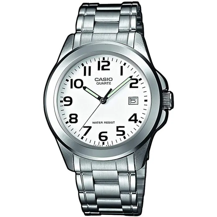 Betreed de wereld van verfijning met de Casio® Analogue 'Collection' herenhorloge MTP-1259PD-7BEG. Dit horloge, met een zorgvuldig ontworpen stijl, vertegenwoordigt tijdloze elegantie en functionaliteit. De stevige kast van messing, afgewerkt in een opvallende zilveren kleur, biedt een perfecte combinatie van duurzaamheid en stijl. Met een kastdiameter van 38 mm en een dikte van slechts 9 mm, zit dit horloge comfortabel om je pols en is het een ideale metgezel voor zowel casual uitjes als formele gelegenheden. Het horloge beschikt over een strakke, witte wijzerplaat die een duidelijk zicht op de tijd biedt, versierd met lumineuze wijzers voor uitstekende leesbaarheid, zelfs bij weinig licht. Het mineraalglas beschermt superior tegen krassen, waardoor de duurzaamheid van het horloge wordt vergroot terwijl het een nette uitstraling behoudt. De opklapbare sluiting met drukknop zorgt voor een veilige pasvorm, zonder in te boeten op gemak. Een opvallend kenmerk van de MTP-1259PD-7BEG is de band van roestvrij staal, die niet alleen het totale ontwerp aanvult, maar ook uitzonderlijk comfort biedt. Met een lengte van 21 cm en een breedte van 18 mm balanceert de band robuustheid en flexibiliteit perfect. Met een waterdichtheid van 3 bar is dit horloge bestand tegen dagelijkse spatjes, waardoor het praktisch is voor dagelijks gebruik. Met een kalenderfunctie zorgt dit horloge voor extra functionaliteit, zodat je georganiseerd kunt blijven. Met een gewicht van slechts 95 gram is het licht, maar robuust genoeg om een indruk te maken, zodat je er altijd op je best uitziet en je ook zo voelt. De Casio® Analogue 'Collection' weerspiegelt een toewijding aan uitmuntendheid, waardoor het meer is dan alleen een horloge; het is een statement van stijl en verfijning.Koop Casio® Analogue 'Collection' herenhorloge MTP-1259PD-7BEG bij Ormoda