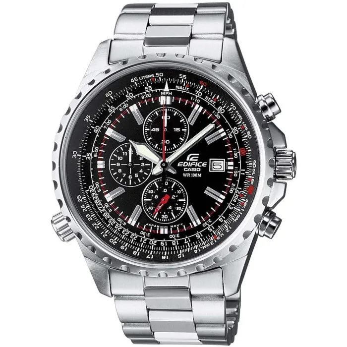 De Casio® Chronograph 'Edifice' Herenhorloge EF-527D-1AVEF is niet zomaar een horloge; het is een bewijs van precisie en stijl dat de essentie van de moderne man vastlegt. Dit opmerkelijke uurwerk, vervaardigd door het gerenommeerde merk Casio, staat synoniem voor innovatie en betrouwbaarheid. Het unieke pilot-style ontwerp van dit horloge combineert functionaliteit met elegantie. Met een robuuste ronde kast van 45 mm, gemaakt van duurzaam roestvrij staal, is dit horloge bestand tegen de dagelijkse slijtage, waardoor het de ideale metgezel is voor elk avontuur, of je nu in de boardroom bent of in de lucht. De opvallende zwarte wijzerplaat wordt beschermd door mineraal glas, wat een stijlvolle achtergrond biedt voor de chronograaffuncties, terwijl de tachymeter bezel de sportieve uitstraling versterkt. De zilveren horlogeband is vervaardigd uit hoogwaardig roestvrij staal en biedt comfort en duurzaamheid, terwijl het een gepolijste look uitstraalt. Met een lengte van 22 cm en een breedte van 20 mm past het horloge veilig om de pols dankzij de vouwsluiting met een dubbel drukknopsysteem. Dit doordachte ontwerp zorgt ervoor dat je je kunt concentreren op wat echt belangrijk is zonder je zorgen te maken dat je horloge van je pols glijdt. Met een waterdichtheid van tot wel 10 bar is dit uurwerk voorbereid op elke situatie, van een zakelijke bijeenkomst tot een casual uitje. Daarnaast biedt het horloge een handige datumkalender, wat extra praktisch is naast de al indrukwekkende functies. Dit model is een perfecte mix van klassieke esthetiek en moderne technologie, en biedt niet alleen functionaliteit maar ook een mode-uitspraak die resoneert met de zelfverzekerde man.