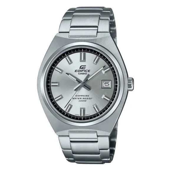 Maak kennis met het Casio Analoge 'Edifice' Herenhorloge EFB-109D-7AVEF, waar verfijning en functionaliteit samenkomen. Dit meesterwerk is ontworpen voor de moderne man die waarde hecht aan precisie en stijl. Dit horloge is uitgerust met een betrouwbare quartz beweging, die zorgt voor nauwkeurigheid bij elke tik. Met een slanke zilveren kast, vervaardigd uit duurzaam roestvrij staal, heeft het horloge een diameter van 38mm en een dikte van 9mm, wat ervoor zorgt dat het comfortabel op de pols zit en tegelijkertijd een elegante uitstraling behoudt. De ronde kast omhult een schitterende zilveren wijzerplaat, beschermd door saffierglas, bekend om zijn krasbestendigheid en helderheid. Het horlogegezicht beschikt over een handige datumkalender, die praktischiteit naadloos integreert met een verfijnd esthetisch ontwerp. De armband van de Edifice is even indrukwekkend, gemaakt van hoogwaardig roestvrij staal, met een lengte van 21cm en een breedte van 20mm, waardoor het perfect aansluit. De vouwsluiting met een drukknopmechanisme voegt een extra laag van gemak toe, waardoor het horloge gemakkelijk te dragen en af te nemen is. Ontworpen om de dagelijkse uitdagingen te weerstaan, is dit horloge waterbestendig tot 10 bar, wat het geschikt maakt voor diverse activiteiten, of het nu een dag op kantoor is of een informele uitje. Met een gewicht van 128 gram vindt dit horloge de perfecte balans tussen substantie en comfort. De Casio Edifice is niet zomaar een tijdpiece; het is een stijlstatement, perfect voor mannen die de fusie van esthetiek en functie waarderen.