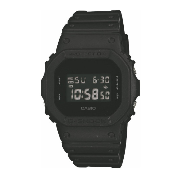 Het Casio® Digital 'G-shock' Herenhorloge DW-5600BB-1ER staat synoniem voor veerkracht en functionaliteit. Ontworpen voor avonturiers, heeft dit uurwerk een gedurfde en sportieve uitstraling die perfect is voor elke man die het leven ten volle wil leven. Met een robuuste rechthoekige behuizing van kunststof, meet het 42mm in lengte en 35mm in breedte, wat zorgt voor een stevige maar comfortabele pasvorm op de pols. De zwarte behuizing en wijzerplaat creëren een opvallend contrast dat de zichtbaarheid verbetert en tegelijkertijd een stijlvol element aan uw outfit toevoegt. Met een dikte van 12mm heeft dit horloge een stevige aanwezigheid zonder te zwaar te zijn. Uitgerust met een quartz beweging, is de betrouwbaarheid van dit horloge ongeëvenaard. Het beschikt over een digitaal display, dat gemakkelijk af te lezen is door het duurzame mineralen glas. Dit zorgt ervoor dat u de tijd in één oogopslag kunt controleren, of u nu op een hike bent of op een zakelijke bijeenkomst. Het horloge heeft verschillende functies, waaronder een dag-datum-maand kalender, stopwatch, countdown timer, alarm en licht, waardoor het de perfecte metgezel is voor elke gelegenheid. De zwarte kunststof band, met een lengte van 22cm en een breedte van 22mm, completeert het horloge perfect en biedt comfort tijdens het dragen. Met een indrukwekkende waterbestendigheid van maar liefst 20 bar is de DW-5600BB-1ER gebouwd om de elementen te weerstaan, waardoor u zich kunt concentreren op uw activiteiten zonder u zorgen te maken over uw uitrusting. Dit horloge is meer dan alleen een hulpmiddel; het is een essentieel accessoire dat functionaliteit combineert met een robuuste esthetiek, perfect voor de moderne man die elke uitdaging in het leven aangaat.Koop Casio® Digital 'G-shock' Herenhorloge DW-5600BB-1ER bij Ormoda