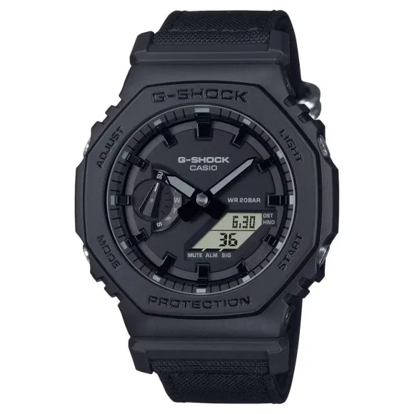 De Casio® Analogue-digital 'G-shock' Unisex's Watch GA-2100BCE-1AER is een meesterwerk in het combineren van stijl en functionaliteit, ontworpen voor zowel sportliefhebbers als dagelijkse dragers. Met een opvallende zwarte kunststof kast van 45mm in diameter biedt dit horloge duurzaamheid zonder in te boeten op comfort. De ronde vorm, samen met een dikte van 11mm, vertaalt zich in een slank en minimalistisch ontwerp dat moeiteloos op elke pols past. De wijzerplaat is ook in het zwart, beschermd door mineraalglas, zodat het de uitdagingen van dagelijkse avonturen kan doorstaan en tegelijkertijd een klassieke uitstraling biedt. Het horloge werkt op een betrouwbare quartz beweging, die precisie en duurzaamheid belooft. Wat dit uurwerk onderscheidt, is de analoog-digitale display. Daarnaast is het horloge uitgerust met opmerkelijke functies zoals een stopwatch, wereldtijdfunctie, countdown timer, alarm en licht, waardoor het de perfecte metgezel is voor actieve levensstijlen. De zwarte stoffen band, met een lengte van 21cm en een breedte van 20mm, zorgt voor een comfortabele en veilige pasvorm, terwijl de buckle sluiting eenvoudig aan te passen is. Gebouwd om de ontberingen van het leven aan te kunnen, heeft de Casio GA-2100BCE-1AER een indrukwekkende waterdichtheid tot 20 bar, geschikt voor zwemmen en snorkelen. Met een lichtgewicht ontwerp van slechts 56 gram kun je het de hele dag dragen zonder je belast te voelen. Dit horloge is niet zomaar een accessoire; het is een statement van veerkracht en stijl, ontworpen om de tand des tijds en trends te doorstaan. Iedereen die dit model draagt, zal de verfijnde esthetiek gecombineerd met robuuste functionaliteit waarderen, waardoor het een veelzijdige aanvulling op elke collectie is. Koop Casio® Analogue-digital 'G-shock' Unisex's Watch GA-2100BCE-1AER bij Ormoda