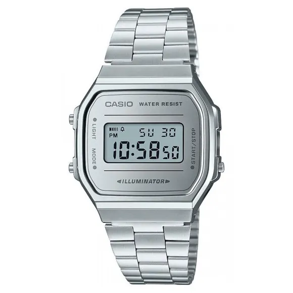 Maak kennis met de Casio® Digital 'Vintage' Unisex Horloge A168WEM-7EF, een perfecte mix van nostalgie en moderne functionaliteit. Dit horloge is ontworpen voor degenen die de charme van klassieke ontwerpen waarderen en tegelijkertijd willen profiteren van hedendaagse functies. Het merk Casio is sinds zijn oprichting een symbool van precisietechniek en innovatieve technologie. Beroemd om het creëren van duurzame en stijlvolle tijdpieces, heeft Casio zich stevig gevestigd als een vertrouwde naam in de horloge-industrie. De Vintage-collectie benadrukt de tijdloze esthetiek die een gevoel van retro flair oproept, iets dat zowel door ervaren horlogeliefhebbers als nieuwere generaties wordt gewaardeerd. Dit horloge is niet zomaar een accessoire; het is een statement stuk dat de geest van een vervlogen tijdperk belichaamt, terwijl het naadloos in de hedendaagse levensstijl past. De Casio® Digital 'Vintage' Unisex Horloge A168WEM-7EF valt op door zijn opvallende zilveren kast en bijpassende horlogeband van roestvrij staal, wat een casual elegantie uitstraalt die moeilijk te negeren is. Met een vierkante behuizing van hars die 35mm bij 35mm meet en een dikte van slechts 9mm, is dit tijdpiece lichtgewicht en comfortabel voor dagelijks gebruik. Het digitale display beschikt over een zilveren wijzerplaat met een dag-datum functie, zodat je altijd georganiseerd en punctueel blijft. Met een waterbestendigheidsbeoordeling van 3 bars kun je het zonder zorgen dragen tijdens dagelijkse activiteiten. Dit model wordt aangedreven door een quartz beweging, wat zorgt voor een nauwkeurige tijdwaarneming. De vouwsluiting garandeert een veilige pasvorm om je pols en maakt eenvoudige aanpassingen mogelijk. De band heeft een lengte van 20 cm en een breedte van 15 mm, waardoor hij gemakkelijk aanpasbaar is voor verschillende polsformaten. Met een gewicht van 50 gram voelt dit horloge substantiëel genoeg aan om premium te zijn, maar licht genoeg voor dagelijks gebruik. Of je nu je kleed voor een casual uitje of het dagelijks leven sport, dit Vintage horloge belichaamt zowel stijl als functie. Met de esthetische aantrekkingskracht van de jaren '80 is dit tijdloze stuk een essentieel onderdeel van ieders collectie, dat aanspreekt tot elk unisex publiek dat kwaliteit en ontwerp waardeert.Koop Casio® Digital 'Vintage' Unisex Horloge A168WEM-7EF bij Ormoda