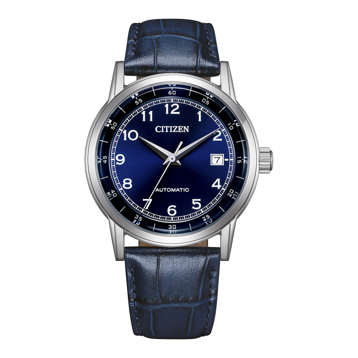De citizen nj0210-13l voor heren is uitgerust met een automatisch uurwerk en een rvs kast. De blauw wijzerplaat is gehuisvest in een zilverkleurig gekleurde kast en een blauw leer band. Het horloge wordt geleverd in een originele doos en heeft een garantie van 2 jaar.