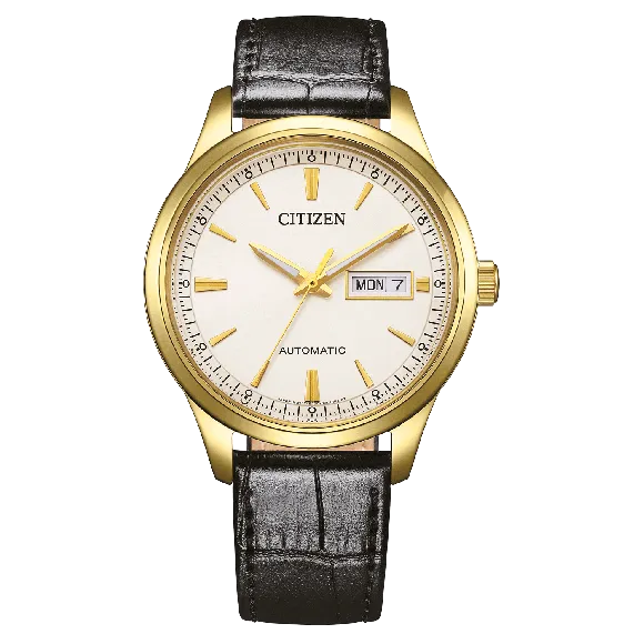 Maak kennis met de Citizen® Analogue Herren Horloge NY4059-09AC, een meesterwerk van precisie en stijl. Dit horloge wordt aangedreven door een automatische beweging, die ervoor zorgt dat het betrouwbaar en nauwkeurig blijft bij iedere tik. De slanke ronde kast in goud, vervaardigd uit hoogwaardig roestvrij staal, biedt niet alleen duurzaamheid, maar ook een vleugje elegantie dat aansluit bij de verfijnde man. Met een diameter van 40 mm en een dikte van 11 mm past het comfortabel om de pols, waardoor het een perfect accessoire is voor zowel dagelijks gebruik als speciale gelegenheden. Het horloge heeft een klassieke witte wijzerplaat met een mineraal glazen venster, dat zorgt voor duidelijke zichtbaarheid en een tijdloze charme toevoegt. De dag-datum functie verhoogt de praktische waarde, waardoor het een ideale metgezel is voor de moderne man die zowel stijl als functionaliteit waardeert. De zwarte leren band past niet alleen perfect bij de gouden kast, maar biedt ook comfort en een strakke pasvorm, dankzij de lengte van 21 cm en een breedte van 18 mm. De gesp zorgt ervoor dat het horloge de hele dag veilig op zijn plaats blijft. Met een waterbestendigheid tot 5 bar kan dit horloge tegen spatwater en regen, wat gemoedsrust biedt tijdens dagelijkse activiteiten. Met slechts 72 gram is het licht genoeg om te vergeten dat je het draagt, maar stevig genoeg om een statement te maken. De Citizen® Analogue Herren Horloge NY4059-09AC is meer dan alleen een tijdpiece; het is een reflectie van jouw stijl en een bewijs van kwaliteitsvakmanschap.
