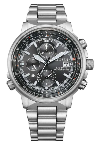 De citizen promaster sky at8300-58e voor heren is uitgerust met een eco-drive uurwerk en een rvs kast. De zwart wijzerplaat is gehuisvest in een zilverkleurig gekleurde kast en een zilverkleurig rvs band. Het horloge wordt geleverd in een originele doos en heeft een garantie van 2 jaar.