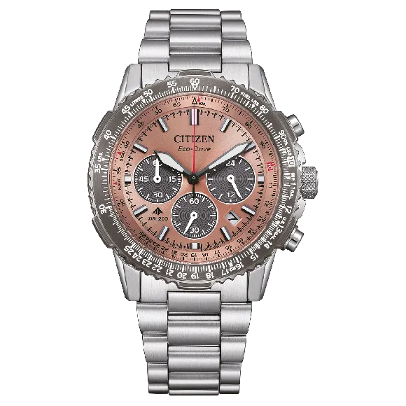 Ervaar de perfecte fusie van precisie en stijl met de CitizenĀ® Chronograph 'Promaster Sky Navihawk' herenhorloge CA4664-60X. Dit opmerkelijke tijdsysteem is speciaal ontworpen voor de veeleisende gentleman die zowel functionaliteit als elegantie waardeert. Aangedreven door Eco-Drive technologie, benut dit horloge licht van iedere bron om betrouwbare prestaties te garanderen, waardoor het de ideale metgezel is voor al je avonturen. De roestvrijstalen kast, met een diameter van 40mm en een slanke dikte van 13mm, is niet alleen robuust, maar straalt ook moderne verfijning uit. Dit horloge met een stijlvolle bruine wijzerplaat, beschermd door saffierglas, biedt helderheid en duurzaamheid, met luminescerende wijzers die de zichtbaarheid in alle lichtomstandigheden verbeteren. De nadruk ligt op functionaliteit; dit horloge heeft een draaibare bezel die extra gebruiksgemak toevoegt, naast de indrukwekkende chronograafweergave. Of je nu een avontuur timet of simpelweg je dag bijhoudt, het horloge biedt precisie en stijl in gelijke mate. Dit tijdsysteem bevat ook een datumsysteem, wat getuigt van praktisch ontwerp voor dagelijks gebruik. De 21 cm lange roestvrijstalen band complementeert het totale uiterlijk perfect, en de vouwsluiting met drukknop zorgt voor een veilige pasvorm. Met een waterbestendigheid van tot 20 bar is de Promaster Sky Navihawk ontworpen voor de uitdagingen die het leven presenteert. Dit horloge combineert naadloos de hoge prestaties van een professionele chronograaf met een gevoel van verfijnde luxe, waardoor het een statementstuk is voor elke gelegenheid.