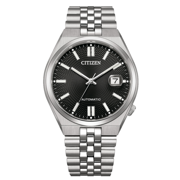 De citizen tsuyosa nk0020-55e voor heren is uitgerust met een automatisch uurwerk en een rvs kast. De zwart wijzerplaat is gehuisvest in een zilverkleurig gekleurde kast en een zilverkleurig rvs band. Het horloge wordt geleverd in een originele doos en heeft een garantie van 2 jaar.