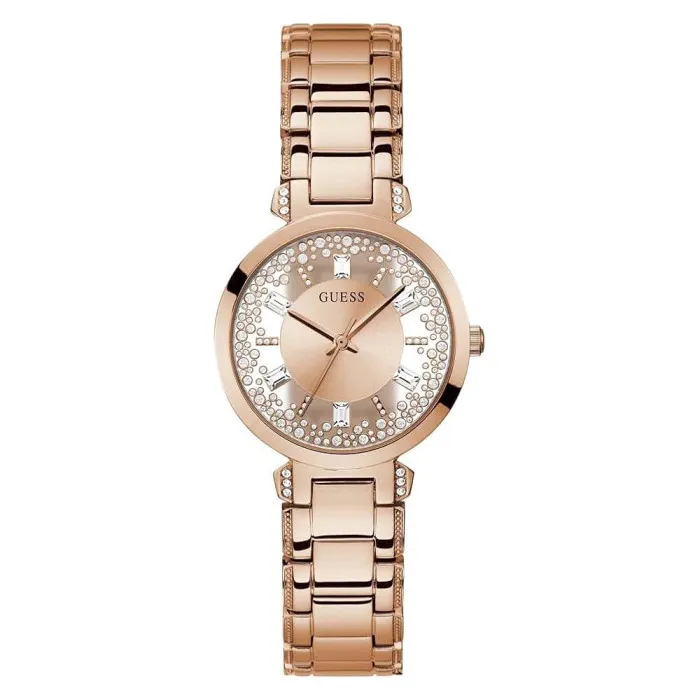 Guess is al lang synoniem voor modieuze accessoires die appeal hebben voor de moderne vrouw. Opgericht met een passie voor het creëren van stijlvolle maar praktische stukken, blijkt de toewijding van het merk aan kwaliteit en ontwerp in elk product. Het 'Crystal Clear' dameshorloge belichaamt deze ethos, waarbij hedendaagse esthetiek wordt gecombineerd met tijdloze elegantie. Elk horloge is met precisie vervaardigd en biedt niet alleen een tijdweergave-apparaat, maar ook een sieraad dat elke outfit verbetert. Guess omarmt creativiteit en put inspiratie uit diverse trends om aan de steeds veranderende smaken van haar klanten te voldoen. Deze innovatieve geest is wat Guess onderscheidt in de sieraden- en horloge-industrie, waardoor het een geliefd merk is voor diegenen die op zoek zijn naar luxe en stijl.