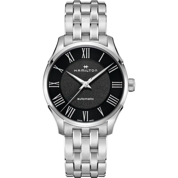 De Hamilton® Analogue 'Jazzmaster' Mannenhorloge H42535130 is een meesterlijke combinatie van elegantie en functionaliteit, ontworpen om uw horlogecollectie naar een hoger niveau te tillen. Met een verfijnde zilveren roestvrijstalen kast van 40 mm brengt dit tijdpiece een opvallend maar subtiel element in uw outfit. De automatische beweging zorgt ervoor dat u altijd op tijd bent, wat de toewijding van het merk aan uitmuntendheid in de techniek weerspiegelt. De slanke zwarte wijzerplaat, beschermd door saffierglas, voegt diepte en rijkdom toe terwijl de tijd gemakkelijk leesbaar blijft. De ronde kaststijl, met een dikte van slechts 11 mm, biedt een comfortabele pasvorm om de pols, terwijl de zilveren roestvrijstalen band zich uitstrekt tot 21 cm en geschikt is voor verschillende polsformaten. De deployant sluiting garandeert een stevige pasvorm, waardoor het gemakkelijk is om dit horloge dagelijks te dragen zonder zorgen. Met een waterbestendigheid van 5 bar weerstaat het de ontberingen van het leven zonder compromissen. Met een hoogte van 47 mm van lug tot lug belichaamt dit horloge de perfecte balans tussen vorm en functie, ideaal voor een zelfverzekerde man die zowel luxe als praktische toepassingen omarmt.