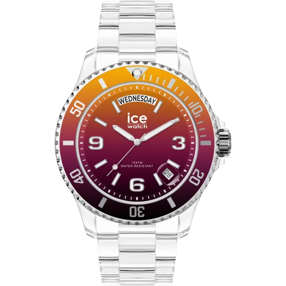 De Ice Watch® Analogue 'Ice Clear Sunset - Fire' unisex horloge herdefinieert sportieve elegantie met zijn opvallende ontwerp en veelzijdige aantrekkingskracht, perfect voor iedereen. Met een medium formaat en een transparante kunststof behuizing, trekt deze horloge niet alleen de aandacht maar zit ook comfortabel om de pols. Zijn ronde case, met een diameter van 40mm en een dikte van 13mm, belooft duurzaamheid en stijl, terwijl de multicolor wijzerplaat een speelse toon toevoegt aan het geheel. Het venster van mineraalglas beschermt de levendige kleuren eronder, waarmee zichtbaarheid en integriteit gegarandeerd zijn. Voorzien van een draaibare bezel, is deze horloge ontworpen voor wie functionaliteit naast mode waardeert. Een opmerkelijk kenmerk van deze horloge is de quartz beweging, die nauwkeurige tijdmeting biedt voor jouw dynamische levensstijl. Hij bevat een dag-datum kalender, wat het praktisch maakt voor dagelijks gebruik. Het anti-kras mineraalglas zorgt ervoor dat dit tijdstuk er nieuw blijft uitzien, zelfs bij regelmatig gebruik. De transparante plastic band draagt bij aan het lichte gevoel, met een breedte van 20mm en een lengte van 18cm, perfect voor een actieve dag of een casual avond. Of je nu naar de sportschool gaat of een weekendactiviteit onderneemt, deze horloge is ontworpen om mee te gaan waar je ook gaat. Met een waterbestendigheid van 10 bar kan hij spetters en korte onderdompelingen weerstaan, wat de veelzijdigheid vergroot. Ice Watch staat bekend om zijn levendige kleuren en creatieve ontwerpen, en de 'Ice Clear Sunset - Fire' is daarop geen uitzondering. Dit model belichaamt de geest van verkenning en avontuur, waardoor dragers hun unieke stijl kunnen uitdrukken terwijl ze stipt op tijd blijven. Ontdek hoe dit stuk je accessoires verzameling kan verfraaien met zijn jeugdigheid en duurzame constructie. Koop Ice Watch® Analogue 'Ice Clear Sunset - Fire' Unisex's Watch (Medium) 021437 bij Ormoda
