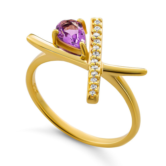 De Orphelia® 'Charlotte' Dames Ring van Sterling Zilver - Goud ZR-7580/A is een verbluffend stuk dat elegantie en verfijning belichaamt. Gemaakt van 925 sterling zilver, glanst deze prachtige ring in een rijke goudkleur die perfect aansluit bij zijn ontwerp. De ring heeft een opvallende peervormige amethist, waarvan de betoverende paarse tint de aandacht trekt en een koninklijke uitstraling toevoegt. Deze kostbare edelsteen wordt verfraaid met een zirconiumaccent, waardoor de ring vanuit elke hoek stralend schittert. Met een breedte van 1,5 cm is de ring ontworpen voor zowel comfort als stijl, waardoor het een perfecte accessoire is voor elke gelegenheid. De kruisvorm voegt een unieke flair toe, die schoonheid en kracht symboliseert, een perfecte belichaming van de moderne vrouw. Ontworpen met vrouwen in gedachten, fungeert het als een statementstuk, of het nu alleen of in combinatie met andere elegante sieraden wordt gedragen. De 'Charlotte' is niet zomaar een ring, het is een ervaring, een viering van individualiteit die de drager in staat stelt haar unieke stijl uit te drukken. Of het nu voor een speciale gelegenheid is of voor dagelijks gebruik, deze ring transformeert elke outfit in een statement van gratie en charme.Koop Orphelia® 'Charlotte' Dames Ring van Sterling Zilver - Goud bij Ormoda