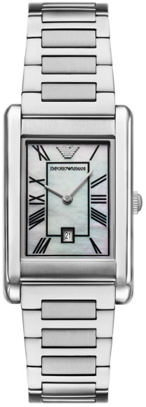 Ontdek de Emporio Armani® Analogue 'Gino' Dameshorloge AR11664, een ware belichaming van elegantie en verfijning, ontworpen voor de moderne vrouw. Dit uitistische horloge beschikt over een verbluffende zilveren rechthoekige kast, vervaardigd uit duurzaam roestvrij staal, en meet 38mm in lengte, 24mm in breedte en heeft een slanke dikte van slechts 7mm. Het horloge combineert stijl perfect met functionaliteit, waardoor het een essentieel accessoire is voor elke gelegenheid. De wijzerplaat van parelmoer weerkaatst het licht op prachtige wijze, wat een vleugje glamour aan je pols toevoegt. Beschermd door mineraalglas zorgt de horlogekast voor helderheid en veerkracht tegen krassen. De zilveren band, vervaardigd uit roestvrij staal, past naadloos bij de kast en biedt een luxe uitstraling terwijl het comfort biedt met een lengte van 19cm en een breedte van 17mm. De vouwsluiting zorgt voor een veilige pasvorm, waardoor het gemakkelijk te dragen is tijdens je drukke dag. Functionaliteit wordt verhoogd door een datumkalenderfunctie, waarmee je belangrijke momenten kunt bijhouden. Met een ATM-classificatie van 5 is dit horloge niet alleen stijlvol, maar ook praktisch, omdat het bestand is tegen spatwater en kortstondige onderdompeling in water. Met zowel quartz-beweging biedt het 'Gino' horloge nauwkeurige tijdwaarneming, zodat je je schema moeiteloos kunt bijhouden. Met een totaalgewicht van 90 gram biedt het de juiste balans tussen stevigheid en comfort, waardoor het een substantiële maar comfortabele aanvulling is op je sieradencollectie.Koop Emporio Armani® Analogue 'Gino' Dameshorloge bij Ormoda