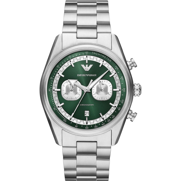 De Emporio Armani® Chronograph 'Racer' Herenhorloge AR11637 is een opvallend voorbeeld van luxe en prestatie die de geest van het merk belichaamt. Ontworpen voor de moderne man, beschikt dit horloge over een robuuste 42 mm ronde kast van roestvrij staal die zowel duurzaamheid als stijl benadrukt. Met een slanke zilveren kast en een gedurfde groene wijzerplaat creëert het een perfect contrast dat de aandacht trekt zonder te overweldigen. Het mineraalglazen venster van de wijzerplaat beschermt je horloge tegen krassen en laat de fluorescerende wijzers zelfs in weinig licht helder stralen. De chronograafweergave voegt een sportieve edge toe en wordt aangevuld door een tachymeter, waarmee de functionaliteit verder wordt vergroot voor degenen die precisietiming waarderen. Een vouwsluiting zorgt voor een veilige pasvorm en blijft tegelijkertijd gemakkelijk te dragen, waardoor dit horloge een ideale metgezel is voor zowel sportieve activiteiten als alledaagse gelegenheden. Met een waterbestendigheid van 5 bar kun je zonder zorgen je avonturen aangaan. De band van roestvrij staal is niet alleen stijlvol, maar ook comfortabel, met een lengte van 21 cm die aan verschillende polsmaten is aan te passen. Elk detail, van de ingewikkelde stopwatchfunctie tot de datumweergave, exemplificeert de luxe die Emporio Armani biedt in de horlogemakerij, waardoor de Racer een must-have is voor elke veeleisende gentleman. Of je nu naar kantoor gaat of een avondje uit gaat, de Emporio Armani Chronograph 'Racer' voegt een vleugje elegantie toe aan elke outfit. Het is niet slechts een horloge; het is een verfijnde uitdrukking van jouw smaak en levensstijl.Koop Emporio Armani® Chronograph 'Racer' Herenhorloge bij Ormoda