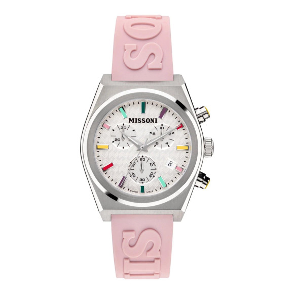 Introductie van het exquisiete merk Missoni, waar luxe samenkomt met hedendaags design. Met een erfgoed doordrenkt van Italiaanse vakmanschap vertegenwoordigt Missoni een levendige benadering van mode, gekenmerkt door ingewikkelde patronen, gedurfde kleuren en een speelse esthetiek. Het merk gelooft dat elk accessoire een verhaal vertelt, en hun toewijding strekt zich verder uit dan alleen stijl tot een viering van de speelse momenten in het leven. De creaties van Missoni zijn vervaardigd met nauwkeurige aandacht voor details, zodat elk stuk een unieke mix van kunstzinnigheid en functionaliteit weerspiegelt. In hun horlogecollecties houdt Missoni briljant de essentie vast van tijdloze verfijning verweven met moderne flair, waardoor elk horloge niet alleen een tijdpiece is, maar een waar statement van identiteit. Met een indrukwekkende reputatie die door de jaren heen is opgebouwd, blijft Missoni aan de voorhoede van de modewereld, geliefd bij degenen die op zoek zijn naar onderscheidende, luxe accessoires.Over MissoniĀ® Chronograph 'Active' Dameshorloge