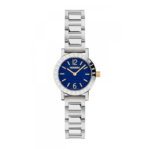 Stel je voor: de Missoni® Analogue 'Estate' Damenuur MWGY00323, een prachtig sieraad dat elegantie en verfijning belichaamt. Dit horloge is ontworpen voor de veeleisende vrouw die tijdloze stijl combineert met luxe comfort. Het horloge is vervaardigd met een zilveren roestvrijstalen kast van 27 mm in diameter en slechts 8 mm dik. De zorgvuldig ontworpen ronde wijzerplaat past bij elke dresscode. De betoverende blauwe wijzerplaat is beschermd door saffierglas, dat bekend staat om zijn krasbestendigheid en helderheid. Dit zorgt ervoor dat je horloge jarenlang een geliefd item in je collectie blijft. De mode-zilveren roestvrijstalen band, met een lengte van 19 cm en een breedte van 13 mm, bevat een veilige klapsluiting die niet alleen zorgt voor een secure pasvorm, maar ook gemakkelijke draagbaarheid biedt. Met een waterbestendigheid van tot 3 bar is dit horloge praktisch voor dagelijks gebruik, terwijl het toch zijn luxueuze uitstraling behoudt. De quartz beweging zorgt voor een nauwkeurige tijdsregistratie, waardoor het niet alleen een mooi accessoire is, maar ook een betrouwbare. Elke blik op de Missoni 'Estate' laat een perfect sieraad zien voor elke gelegenheid, of je nu op een zakelijke bijeenkomst bent of een avondje uit met vrienden. Combineer het met je favoriete sieraden voor een gecoördineerde look of laat het uitsluitend opvallen als een statement stuk. Met een gewicht van 74 gram is het een waar genot om te dragen zonder ongemak. Betoverend, functioneel en onmiskenbaar stijlvol, dit horloge is een essentiële aanvulling op de accessoires van elke vrouw.Koop Missoni® Analogue 'Estate' Damenuur bij Ormoda