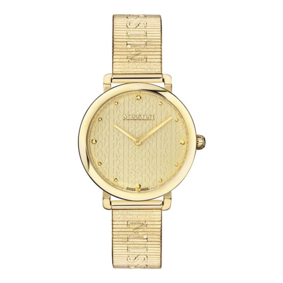 Missoni staat synoniem voor luxe en designexcellentie in de modewereld. Opgericht in de jaren vijftig, heeft het merk een kenmerkende stijl ontwikkeld die wordt gekenmerkt door levendige kleuren, gedurfde patronen en een speelse, maar verfijnde benadering van mode en accessoires. De horloges van Missoni belichamen de toewijding van het merk aan kwaliteitsambacht en tijdloze esthetiek. Elk stuk weerspiegelt de creativiteit en innovatie die het merk gedurende tientallen jaren heeft gedefinieerd, waardoor ze een favoriete keuze zijn onder mode enthousiastelingen en stijlconnaisseurs. Met een focus op onberispelijke materialen en aandacht voor detail is Missoni een bepalende naam in de moderne luxe geworden, en mengt het naadloos mode met functionaliteit. Dit horlogemerk blijft vrouwen inspireren om hun individualiteit te uiten door middel van ongeëvenaarde elegantie en chique ontwerpen. Als luxe horlogemaker blijft Missoni een baken van stijl en verfijning in de glamoureuze wereld van accessoires, en creëert het stukken die niet alleen mooi maar ook betekenisvol zijn.Over Missoni® Analogue 'M1' Dameshorloge