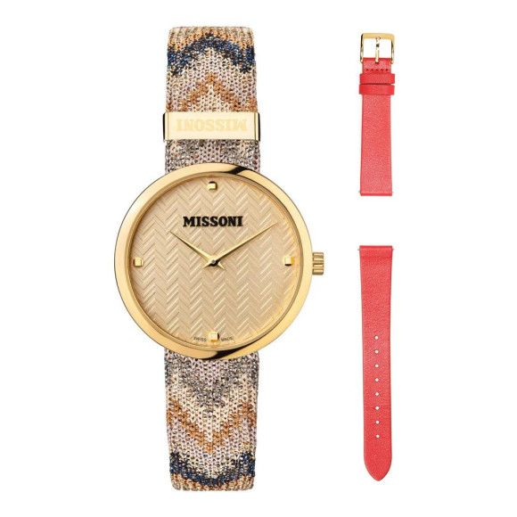 Missoni is een prestigieus merk dat bekendstaat om zijn levendige en gedurfde ontwerpen die luxe opnieuw definiëren. Met de focus op unieke patronen en kleurrijke esthetiek heeft Missoni mode-enthousiastelingen over de hele wereld betoverd. De toewijding van het merk aan vakmanschap is in elk stuk te zien, waardoor de kwaliteit nooit in het gedrang komt. Het combineren van innovatieve technieken met traditionele uitmuntendheid, creëert het tijdloze stukken die resoneren met elegantie. Met een artistieke geest zijn Missoni horloges en sieraden zorgvuldig vervaardigd om vrouwelijkheid en verfijning te vieren. Het merk is trots op het gebruik van premium materialen, wat zorgt voor een verfijnde afwerking die de essentie van hedendaagse luxe weerspiegelt. Elk stuk wordt niet alleen een accessoire, maar een uitdrukking van individualiteit en stijl. Missoni's toewijding aan de kunst van horlogemaking combineert flair met functionaliteit, waardoor hun tijdpieces perfect zijn voor vrouwen die zowel schoonheid als praktische waarde waarderen. De nalatenschap van Missoni overstijgt trends en blijft trouw aan zijn ontwerpracht terwijl het moderniteit en veelzijdigheid omarmt.Over Missoni® Analogue 'M1' Dameshorloge