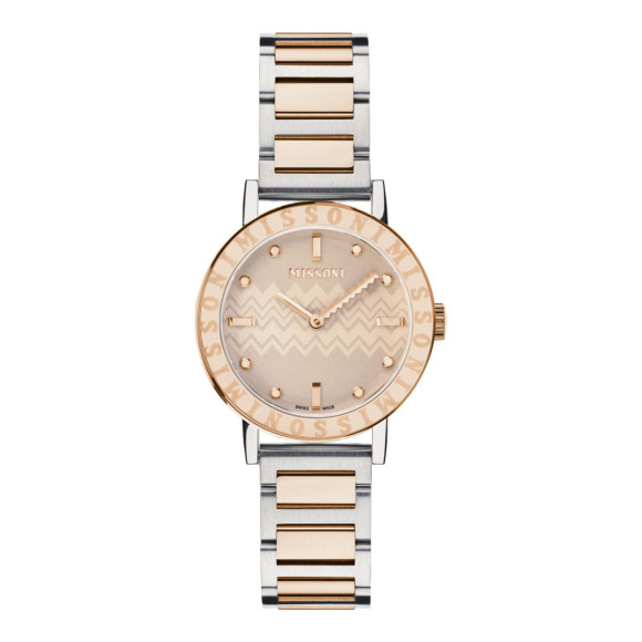 Missoni staat voor een unieke mix van tijdloze charme en hedendaagse mode die horlogeliefhebbers over de hele wereld heeft betoverd. Opgericht in ItaliĆ«, heeft dit luxe merk een iconische identiteit die wordt gekarakteriseerd door levendige patronen, gedurfde kleuren en innovatieve ontwerpen. Elk tijdpiece is een kunstwerk dat de typische Missoni flair weerspiegelt, met zijn verfijning van haute couture en de praktische bruikbaarheid van dagelijkse mode. De toewijding van het merk aan uitmuntendheid is duidelijk zichtbaar in de zorgvuldige ambachtelijkheid, waarbij hoogwaardige materialen worden gebruikt om duurzaamheid te waarborgen en een horloge te creĆ«ren dat zo luxueus is als het eruit ziet. Met een gerichte focus op details zijn Missoni-horloges niet slechts accessoires, maar ook uitingen van individualiteit en empowerment. Omarm je uniciteit met Missoni, waar elk horloge de sprankeling van levendigheid belichaamt die vertrouwen inspireert en een verfijnde smaak laat zien.Over MissoniĀ® Analogue Womenās Watch