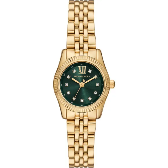 Maak kennis met de prachtige Michael KorsĀ® Analogue 'Lexington' Dameshorloge MK4842, de perfecte metgezel voor de moderne vrouw die elegantie wil combineren met functionaliteit. Dit charmante stuk is voorzien van een chic gouden behuizing van roestvrij staal met een verfijnd rond ontwerp, ideaal aangevuld met een weelderige groene wijzerplaat die moeiteloos de aandacht trekt. Met een diameter van 26 mm en een dikte van slechts 8 mm is het ontworpen om licht op de pols te rusten, waardoor het een ideaal accessoire is voor zowel casual uitjes als formele evenementen. Het mineraalglas beschermt de horloge face en zorgt voor duurzaamheid, terwijl het een kristalhelder zicht op de tijd biedt. De gouden roestvrijstalen band is voorzien van een comfortabele lengte van 19 cm en is ontworpen met een klapsluiting die eenvoudig te gebruiken is en een veilige pasvorm biedt. Met een verfijnd analoog display verenigt dit horloge stijl met doel, waarbij het een betrouwbare quartzbeweging biedt om je op tijd te houden. Met een waterbestendigheid van maximaal 5 bar is dit tijdloze horloge niet alleen een stijlstatement, maar ook een functioneel stuk dat de uitdagingen van de dagelijkse praktijk aankan. Of je nu je kleertjes opfleurt voor een speciale gelegenheid of op zoek bent naar een everyday accessoire, het Lexington horloge voegt een vleugje glamour toe aan elke outfit. Kies voor veelzijdigheid en charme met Michael Kors; het is meer dan alleen een horloge; het is een statement.