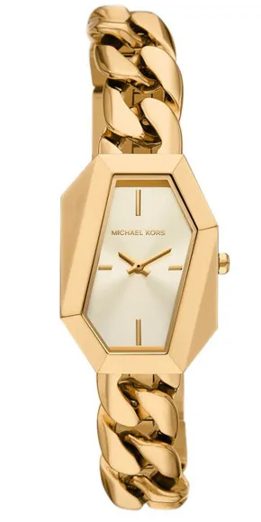 Het merk Michael Kors staat al langere tijd bekend om zijn high-end mode en innovatie, waarbij klassieke stijlen worden samengevoegd met eigentijdse ontwerpen. Bekend om zijn luxueuze accessoires, toont Michael Kors een toewijding aan vakmanschap en kwaliteit, wat het merk tot een favoriet maakt onder mode-liefhebbers wereldwijd. Elk stuk is zorgvuldig ontworpen om te resoneren met de geest van de moderne vrouw van vandaag, en biedt een unieke mix van functionaliteit en elegantie. De kenmerkende esthetiek van het merk wordt gekenmerkt door levendige kleuren, gedurfde silhouetten en luxueuze materialen, waardoor het een uitstekende keuze is voor diegenen die een stijlvolle indruk willen maken. Deze ethos wordt perfect belichaamd in het 'Suri' horloge, dat de essentie van vrouwelijkheid en verfijning vastlegt, ontworpen voor vrouwen die hun individualiteit omarmen en de fijnere dingen in het leven waarderen.