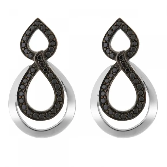 Koop Orphelia® 'Amber' Dames Oorbellen van 925 Sterling Zilver - Zilver/Zwart bij Ormoda