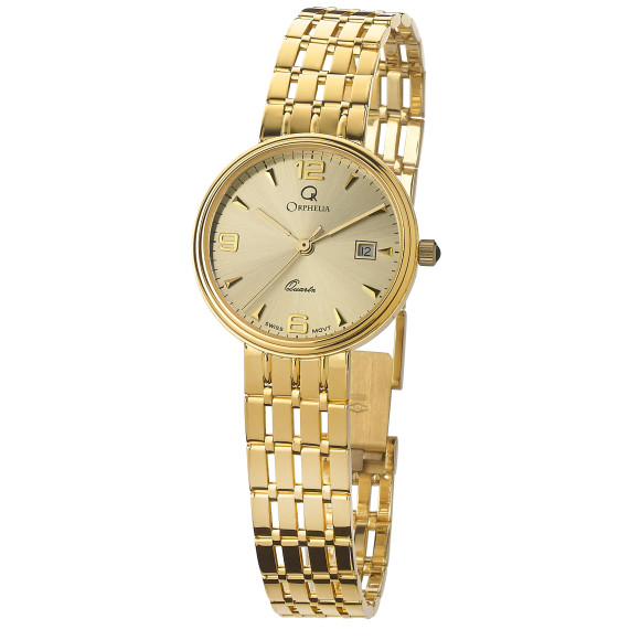 De Orphelia® Analogue Women's Watch MON-7078 is een exquisite tijdpiece ontworpen om te fascineren en inspireren. Dit elegante dresshorloge belichaamt verfijning, met zijn opvallende kast en band in geel goud, waardoor je op elke gelegenheid opvalt. Met een kastdiameter van 24 mm en een dikte van slechts 6,4 mm is dit horloge de perfecte accessoire om de delicate pols van een vrouw te complementeren. De genuanceerde gouden wijzerplaat, beschermd door mineraalglas, toont elegant de analoge weergave van het horloge en voegt een vleugje glamour toe. De doordachte toevoeging van een datumnotatie biedt zowel stijl als functionaliteit, wat aansluit bij de drukke levensstijl van moderne vrouwen. Gemaakt van premium geelgouden materiaal, weerspiegelt de horlogeband niet alleen luxe, maar is ook ontworpen voor duurzaamheid en comfort. Met een lengte van 19,5 cm en een breedte van 12 mm beschikt het over een opklapbare sluiting met een drukknop, die zorgt voor een veilige draagervaring en het gemakkelijk maken om het te dragen en weer af te nemen. Met een gewicht van slechts 29,50 gram biedt de Orphelia tijdpiece een lichtgewicht gevoel dat de hele dag draagbaar is, of je nu een formele bijeenkomst bijwoont of geniet van een casual uitje. Dit horloge is niet alleen een statement van stijl, maar ook een symbool van zelfvertrouwen en elegantie. Het is gemaakt voor de veeleisende vrouw die de fijnere dingen in het leven waardeert en op zoek is naar een veelzijdige accessoire die haar natuurlijke schoonheid versterkt, aansluit bij haar levensstijl en haar garderobe aanvult. Elke blik op het glanzende oppervlak van dit tijdpiece herinnert je aan de kostbare momenten in het leven, waardoor het een ideaal cadeau is voor jezelf of iemand speciaal.Koop Orphelia® Analogue Women's Watch bij Ormoda