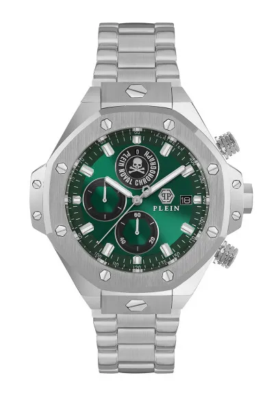 Philipp Plein is een luxe merk dat zich op het snijpunt van moderne kunst en mode bevindt, en staat voor gedurfde en extravagante ontwerpen. Opgericht in 1998, staat het merk bekend om zijn onderscheidende ontwerpen die rockesthetiek combineren met hoogwaardige ambacht. Elke creatie belichaamt een gevoel van individualiteit en vertrouwen, wat aanspreekt tot diegenen die hun uniekheid door mode willen uitdrukken. Of het nu gaat om horloges, kleding of accessoires, Philipp Plein blijft traditionele ontwerpnormen uitdagen door luxe te combineren met een vleugje rebellie. Het merk is beroemd om zijn nauwkeurige aandacht voor detail, waardoor elk stuk kwaliteit en luxe uitstraalt. De combinatie van innovatieve concepten en premium materialen creëert een onmiskenbaar merk van verfijning dat de harten van mode-enthousiastelingen over de hele wereld heeft veroveren. Met een sterke focus op het creëren van opvallende stukken laat Philipp Plein individuen stralen in hun authentieke schittering, waardoor een onvergetelijke impact ontstaat bij elke draagmoment.Over Philipp Plein® Chronograph 'Plein Chrono Royal' Heren Horloge