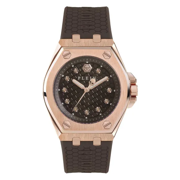 Maak kennis met de Philipp Plein® Analogue 'Plein Extreme Lady' Dameshorloge PWJAA0422, waar verfijnde stijl en dagelijks gebruik samenkomen. Deze prachtige tijdmeter is ontworpen voor de moderne vrouw die zelfvertrouwen en flair uitstraalt. De rosegouden kast, vervaardigd uit hoogwaardig roestvrij staal, voegt een vleugje luxe toe zonder te overdrijven. Met een diameter van 38 mm en een dikte van 10 mm, herbergt deze ronde kast een schitterende bruine wijzerplaat die zowel functioneel als modieus is. Het mineraalglazen venster biedt duurzaamheid en zorgt ervoor dat je de mooie wijzerplaat duidelijk kunt bewonderen. De casual maar elegante stijl maakt het veelzijdig genoeg om zowel je kantoor- als avondoutfits aan te vullen. De silicone band in een bijpassende bruine tint biedt comfort en zorgt voor een goede pasvorm met een lengte van 19 cm, perfect voor je pols. De breedte van 23 mm voegt een gedurfde uitstraling toe, terwijl de gespsluiting de veiligheid gedurende de dag garandeert. Met een waterbestendigheid van maximaal 5 bar is dit horloge klaar om je te vergezellen op al je dagelijkse avonturen. Met een gewicht van slechts 80,50 g is het ideaal voor wie waarde hecht aan praktische bruikbaarheid zonder in te boeten op stijl. Omarm elegantie met de Philipp Plein 'Plein Extreme Lady' en laat je pols spreken.
