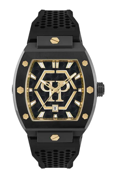 Maak kennis met de Philipp PleinĀ® Analogue 'The Hexagon Phantom' herenhorloge PWPUA0224. Dit opvallende uurwerk is niet alleen een noodzaak, maar ook een bewijs van gedurfde mannelijkheid. Het is uitgerust met een stijlvolle tonneau-behuizing van premium roestvrij staal, die duurzaamheid combineert met een oogverblindend ontwerp. De zwarte behuizing, met een lengte van 44 mm en een breedte van 42 mm, geeft een robuuste uitstraling om de pols, terwijl de dikte van 14 mm zorgt voor een solide gevoel dat de aandacht trekt. De zwarte wijzerplaat, beschermd door mineraalglas, heeft een analoge weergave die verfijning uitstraalt, en maakt het perfect voor elke gelegenheid, van zakelijke bijeenkomsten tot chique evenementen. De horlogeband is even indrukwekkend, gemaakt van hoogwaardig silicone in een bijpassende zwarte tint. Met een lengte van 21 cm en een breedte van 25 mm biedt het een comfortabele pasvorm zonder in te boeten op stijl. Veilig vastgemaakt met een gesp, is het uurwerk ontworpen om dagelijkse slijtage te weerstaan en is het waterdicht tot 5 ATM, zodat je levensavonturen zonder zorgen kunt verkennen. Met zijn voortreffelijke vakmanschap en moderne esthetiek is de Hexagon Phantom een perfecte mix van luxe en functionaliteit. Een horloge voor de veeleisende gentleman, het geeft niet alleen de tijd weer maar vertelt ook de wereld over jouw impeccable smaak. Of je nu een avondje uit bent of op kantoor, dit uurwerk maakt een statement en verrijkt je algehele look met een vleugje elegantie.
