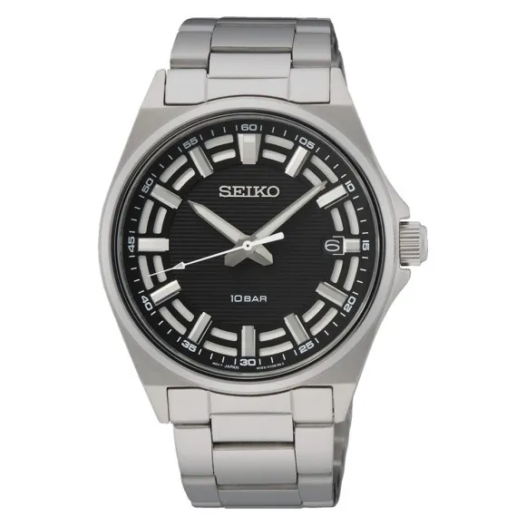 De Seiko® Analoge Herenhorloge SUR505P1 belichaamt stijl en functionaliteit, ontworpen voor mannen die de fijnere dingen in het leven waarderen zonder in te boeten op praktische zaken. Dit horloge vertegenwoordigt casual elegantie en is daardoor een ideale keuze voor zowel dagelijks gebruik als formele gelegenheden. De indrukwekkende zwarte wijzerplaat wordt aangevuld met luminescente wijzers, wat zorgt voor een gemakkelijke tijdsaflezing die ook visueel aantrekkelijk is. Het mineraalglas venster biedt duurzaamheid tegen krassen, waardoor je horloge er jahaar lang als nieuw uitziet. Met een roestvrijstalen kast die een slanke zilveren afwerking heeft, meet het horloge een comfortabele diameter van 40 mm, waardoor het geschikt is voor verschillende polsmaten. De dikte van 9 mm zorgt voor een slank profiel dat perfect op de pols zit. De band van het horloge, eveneens van roestvrijstaal, beschikt over een opvouwbare sluiting met drukknop die zowel veiligheid als gebruiksgemak biedt. Met een lengte van 21 cm en een breedte van 21 mm is de band ontworpen om comfortabel om je pols te passen. Het Seiko® horloge kan tot 10 bar diep gaan, waardoor het geschikt is voor zwemmen en snorkelen, hoewel het altijd verstandig is om diepduiken te vermijden. Met een gewicht van slechts 136 gram is het licht genoeg voor dagelijks dragen. Dit horloge is meer dan alleen een functioneel instrument; het is een statement-stuk dat elke outfit kan verbeteren. Seiko is trots op onberispelijk vakmanschap, wat zorgt voor een verfijning in elk detail van de SUR505P1, waardoor het een perfecte vertegenwoordiging is van de Japanse horlogemakende excellentie.