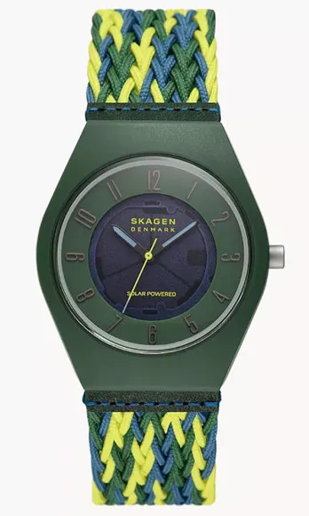 De Skagen® Analogue 'Grenen Samsø Series' Herenhorloge SKW6881 is een bewijs van de Scandinavische ontwerpprincipes. Met een ronde behuizing van resin die duurzaamheid en stijl uitstraalt, heeft het een betoverende groene kleur die de weelderige tinten van de natuur oproept. Met een diameter van 37 mm past dit horloge snugger en comfortabel om de pols, waardoor het een ideale metgezel is voor casual uitjes of verfijnde ontmoetingen. De wijzerplaat, ook in groen, is beschermd door mineraalglas, wat zorgt voor helderheid en veerkracht. Ontworpen met de nadruk op draagbaarheid, heeft het horloge een multicolore stofband die niet alleen een levendige toets toevoegt maar ook voor een comfortabele pasvorm zorgt, met een lengte van 21 cm. De betrouwbare quartz beweging garandeert precisie in elke tick. Met een praktische waterbestendigheid van 3 ATM is het geschikt voor dagelijkse activiteiten zonder angst voor schade. Met een gewicht van slechts 26 gram is dit horloge licht op de pols, en biedt het een zorgeloze ervaring of je nu onderweg bent of geniet van een ontspannen dag.