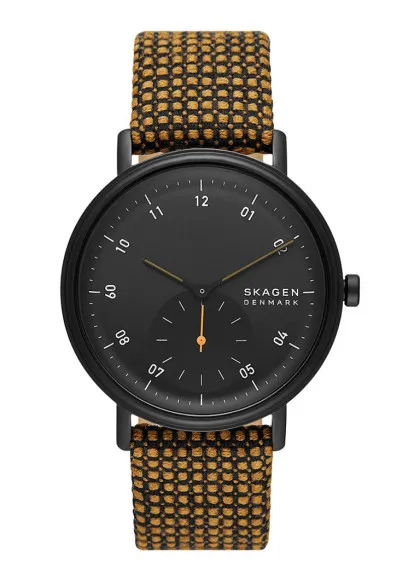 Maak kennis met de Skagen® Analogue 'Kuppel' Herenhorloge SKW6895, een meesterwerk dat moeiteloos stijl en functionaliteit samenbrengt. Gemaakt voor de moderne man, straalt dit horloge een casual maar verfijnde elegantie uit die perfect past in elke setting. De slanke, zwarte stainless steel behuizing van 44 mm is niet alleen robuust, maar verbetert ook de duurzaamheid, waardoor het een ideale metgezel is voor de avonturen van het leven. Beschermd door een stevig mineraal glazen wijzerplaat, toont dit stuk een minimalistisch zwart wijzerplaat dat zorgt voor een duidelijke zichtbaarheid, terwijl de analoge weergave de tijd op betrouwbare wijze bijhoudt. De 'Kuppel' beschikt over een comfortabele bruine stoffen band van 21 cm die de opvallende case kleur aanvult, en een harmonieuze mix van verfijning en casual charme creëert. De gespsluiting zorgt voor een veilige pasvorm, zodat je het met vertrouwen gedurende de dag kunt dragen. Met een waterbestendigheid van tot wel 5 bar, is dit horloge ontworpen om spatten te weerstaan, wat bijdraagt aan de veelzijdigheid. Met een gewicht van slechts 66 gram is het licht genoeg voor dagelijks gebruik zonder concessies te doen aan kwaliteit of stijl. Dit horloge is niet alleen een accessoire; het is een statementstuk dat jouw unieke smaak en gevoel voor stijl weerspiegelt. Omarm de charme van de Skagen 'Kuppel' en til je horlogecollectie naar een hoger niveau.