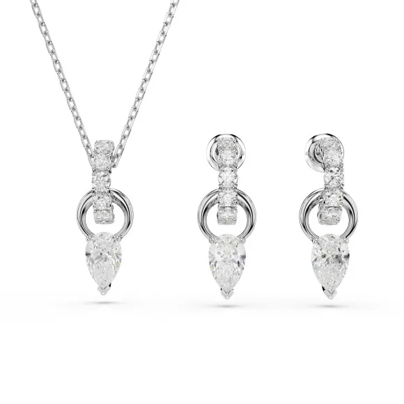 Swarovski staat synoniem voor luxe en verfijning, bekend om zijn ongeëvenaarde precisie in het creëren van prachtige kristalsieraden. Opgericht in 1895 door Daniel Swarovski, is het merk uitgegroeid tot een wereldleider in de wereld van fijne sieraden. Hun toewijding aan vakmanschap en innovaties is overal in hun creaties te zien, waarbij hedendaags ontwerp en tijdloze elegantie samenkomen. Elk Swarovski-item is vervaardigd met de grootste aandacht voor detail, waardoor elk stuk een waar kunstwerk is. Deze toewijding aan excellentie heeft Swarovski een trouwe aanhang opgeleverd onder degenen die de schoonheid en schittering van kristal waarderen. Het merk's pièce de résistance is ongetwijfeld zijn unieke vermogen om alledaagse looks te transformeren in iets buitengewoons, met zijn striking elementen en stralende glans. Voor degenen die willen schitteren en inspireren, is sieraden van Swarovski de perfecte metgezel, waardoor elk moment speciaal en exquisiet aanvoelt.Over Swarovski® 'Mesmera' Vrouwen Basis Metaal Set: Ketting + Oorbellen - Zilver