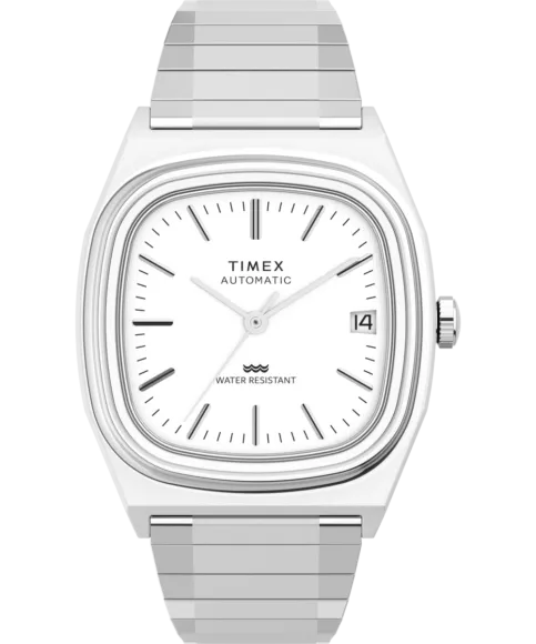 Ontdek de Timex® Analogue '1983 E Line Reissue' Mannenhorloge TW2W70800, een opvallende verbinding met de erfenis van Timex. Ontworpen met precisie, straalt de vierkante stainless steel kast tijdloze verfijning uit, waardoor het de perfecte accessoire is voor zowel casual als formele gelegenheden. De kast van 34mm, met een slanke dikte van 12mm, herbergt een prachtige witte wijzerplaat die wordt beschermd door duurzaam mineraalglas, wat zorgt voor een heldere zichtbaarheid onder alle lichtomstandigheden. Dit horloge heeft een analoge weergave, elegant aangedreven door een automatische beweging die vakmanschap en betrouwbaarheid exemplificeert. Je zult het praktische datumvenster waarderen, perfect voor drukke professionals die waarde hechten aan efficiëntie en stijl. De robuuste stainless steel band, met een lengte van 21 cm en een breedte van 18 mm, is ontworpen voor zowel comfort als duurzaamheid, en de uitbreidbare sluiting zorgt voor een veilige pasvorm voor elke polsmaat. Waterbestendig tot 5 bar, is het horloge gebouwd om dagelijkse slijtage te weerstaan terwijl het zijn esthetische aantrekkingskracht behoudt. Met een totaalgewicht van 79 gram biedt dit tijdpiece een substantieel maar comfortabel gevoel, dat bewijst dat verfijning niet ten koste gaat van comfort. Of je nu naar een zakelijke bijeenkomst of een sociale gelegenheid gaat, dit horloge zal je look zeker versterken, als een symbool van een combinatie van moderne techniek en klassieke ontwerpen.