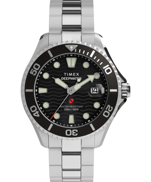 Het Timex® Analogue 'Deep Water Meridian' Herrenhoro TW2W82000 is een waar voorbeeld van gedurfde ontwerpen en opmerkelijke functionaliteit. Dit horloge beschikt over een opvallende zwarte wijzerplaat die wordt benadrukt door luminieuze wijzers, wat uitstekende zichtbaarheid biedt in verschillende lichtomstandigheden. Een opmerkelijke waterbestendigheid tot 20 bar maakt het een betrouwbare metgezel voor het duiken en andere watersporten. Het horloge heeft een band van roestvrij staal die niet alleen de verfijnde esthetiek aanvult, maar ook uitzonderlijke duurzaamheid biedt. Met een verstelbare lengte van 21 cm zorgt de band voor een comfortabele pasvorm voor elke polsmaat. De vouwsluiting met drukknopmechanisme garandeert veiligheid zonder in te boeten op gebruiksgemak. Of u nu een dag aan de oceaan doorbrengt of een zakelijke vergadering bijwoont, de Deep Water Meridian is veelzijdig genoeg om zich aan elke gelegenheid aan te passen. Dit tijdpiece wordt aangedreven door een nauwkeurige quartzbeweging, wat zorgt voor een exacte tijdregistratie in uw drukke dagelijkse routine. Met een gewicht van 180 gram slaat dit horloge een perfecte balans tussen solide vakmanschap en comfortabel dragen, waardoor het een onmisbare aanvulling is op de accessoires van elke moderne man. Geniet van de verfijnde charme en betrouwbaarheid van dit prachtige horloge van Timex, een tijdloos stuk dat uw persoonlijke stijl en robuuste geest belichaamt.Over Timex® Analogue 'Deep Water Meridian' Herrenhoro