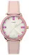 Domineer de elegantie met de Timex Analogue 'Dress X Bcrf' Women's Watch TW2V95700. Dit prachtige sieraad omarmt de vrouwelijke gracie terwijl het uitstekende functionaliteit biedt. Speciaal ontworpen voor vrouwen, laat het een charmante roségouden kast van duurzaam messing zien, wat zorgt voor een chique en robuuste uitstraling. De ronde kast meet 32 mm in diameter en heeft een slanke dikte van slechts 9 mm, waardoor het de perfecte metgezel is voor elke gelegenheid. De horloge beschikt over een prachtige zilveren wijzerplaat, beschermd door duurzaam mineraalglas, dat ervoor zorgt dat het stralend en tijdloos blijft. De verfijnde details van het horloge worden verhoogd door de stenen zettingen op de bezel, die licht op betoverende manieren reflecteren. Een roze leren band van 19 cm voegt een zachte en modieuze toets toe, terwijl de breedte van 16 mm zorgt voor een comfortabele pasvorm voor dagelijks gebruik. Met een betrouwbare gespsluiting is het horloge ontworpen voor gemak en comfort. Met een waterbestendigheid van 5 bar is dit horloge geschikt voor licht zwemmen, waardoor je zelfverzekerd in verschillende omgevingen kunt dragen. De nauwkeurige quartzbeweging zorgt voor een exacte tijdsweergave, waardoor de Timex Analogue 'Dress X Bcrf' niet alleen een stijlvolle accessoire is, maar ook een praktische. Omarm de mix van verfijning en betrouwbaarheid met deze onmisbare aanvulling op je juwelencollectie.Koop Timex® Analogue 'Dress X Bcrf' Women's Watch bij Ormoda