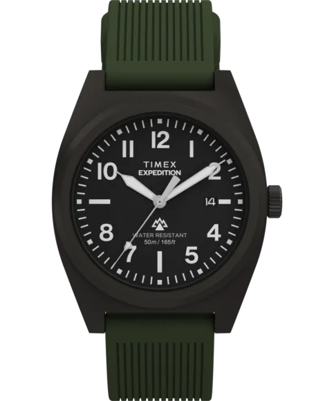 Timex® Analogue 'Expedition North Capstone' Horloge voor Mannen TW2Y18000 is een opvallende weergave van duurzaamheid in combinatie met stijl. Ontworpen voor de moderne avonturier, beschikt deze horloge over een robuuste stainless steel kast afgewerkt in een verfijnde gun kleur. Met een perfect gebalanceerde diameter van 39mm en een dikte van slechts 10mm, past hij comfortabel om de pols, waardoor het geschikt is voor zowel stevige buitenactiviteiten als formele gelegenheden. De zwarte wijzerplaat voegt een elegant tintje toe, terwijl de duurzame mineraalglas bescherming biedt voor duidelijke tijdweergave. Naast de klassieke analoge display biedt deze ook een handige datumkalender, waardoor je georganiseerd blijft op je avonturen. De groene silicone band is ontworpen voor comfort en duurzaamheid, met een lengte van 21cm en een breedte van 19mm, die de pols omarmt zonder in te boeten op stijl. De gesp sluit het horloge op zijn plaats, zodat je je kunt concentreren op je bezigheden zonder zorgen. Dit horloge is waterdicht tot 5 bar, waardoor het bestand is tegen spatwater en korte onderdompelingen zonder schade. De quartz beweging zorgt voor precisie in tijdsregistratie, wat de toewijding van Timex aan vakmanschap weerspiegelt. Dit stuk is niet zomaar een accessoire; het is een betrouwbare compagnon voor degenen die avontuur en spanning zoeken. De Expedition North Capstone belichaamt de essentie van ontdekking met zijn robuuste kenmerken en een ontwerp dat je van de bergen naar de stadsgezichten brengt.Koop Timex® Analogue 'Expedition North Capstone' Horloge voor Mannen bij Ormoda