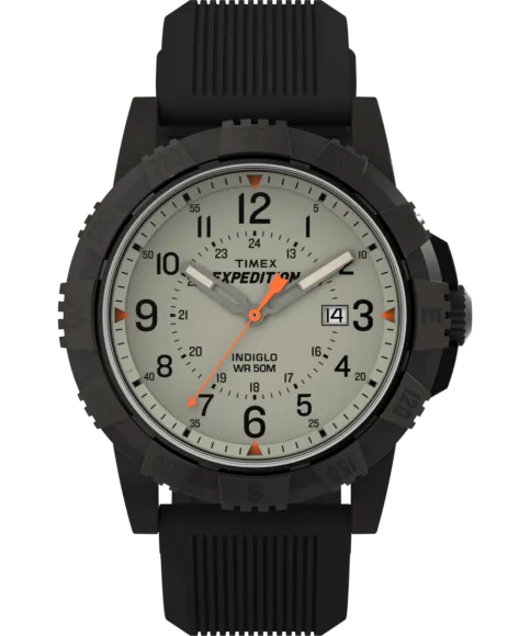 Timex® Analogue 'Expedition North Ridge' Herenhorloge TW4B32200 belichaamt de geest van robuuste verkenning, gecombineerd met moderne verfijning. Ontworpen voor de avontuurlijke man, is dit horloge de perfecte metgezel voor zowel buitenactiviteiten als dagelijks gebruik. Het horloge heeft een stevige ronde kast van 45mm van messing, in een opvallend grijs dat moeiteloos bij het algehele ontwerp past. Met een dikte van 13mm biedt het de ideale balans tussen duurzaamheid en comfort. De grijze wijzerplaat, beschermd door mineraalglas, toont essentiële informatie met een klassiek analoog ontwerp, wat zorgt voor helderheid en stijl in alle omstandigheden. Een hoogwaardige quartzbeweging drijft het horloge aan, wat zorgt voor betrouwbaarheid en precisietiming. Dit tijdstuk is uitgerust met een handige datumfunctie, zodat je altijd op schema blijft. Ideaal voor buitenactiviteiten, is de Expedition North Ridge waterbestendig tot 5 bar, wat gemoedsrust biedt wanneer je geconfronteerd wordt met onvoorspelbare elementen. De zwarte siliconen band, met een lengte van 21cm en een breedte van 21mm, biedt uitstekende flexibiliteit en comfort, beveiligd met een betrouwbare gesp. Deze combinatie van materialen zorgt ervoor dat het horloge verschillende omgevingsuitdagingen doorstaat terwijl het zijn chique esthetiek behoudt. Met een hoogte van 50mm van lug tot lug past het comfortabel om de pols, waardoor het geschikt is voor langdurig gebruik. Of je nu bergen bedwingt of door de stad navigeert, dit horloge belooft je stijl en functionaliteit te verbeteren. Koop Timex® Analogue 'Expedition North Ridge' Herenhorloge bij Ormoda