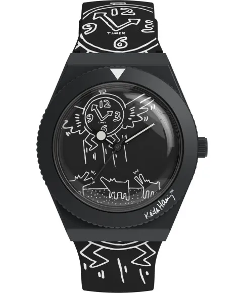 Timex staat al lange tijd synoniem voor kwaliteit en innovatie in de horlogemakerij. Sinds de oprichting heeft dit Amerikaanse merk zich toegewijd aan het vervaardigen van betrouwbare horloges die functionaliteit combineren met artistieke ontwerpen. Timex valt op door zijn rijke geschiedenis, die teruggaat tot 1854, en door zijn toewijding om horloges te creëren die tegemoetkomen aan de diverse levensstijlen van zijn klanten. Het merk heeft met succes een niche voor zichzelf gecreëerd door onverwachte ontwerpen te combineren met solide vakmanschap, met collecties die zowel casual dragers als horlogeliefhebbers aanspreken. Timex is bekend om zijn creativiteit, zoals blijkt uit de samenwerkingen met gerenommeerde kunstenaars, wat resulteert in unieke tijdstukken die persoonlijke expressie weerspiegelen. De toewijding aan innovatieve materialen en technologie zorgt ervoor dat elk horloge voldoet aan hoge prestatienormen, terwijl het ook esthetisch aantrekkelijk blijft. Deze ethos wordt prachtig vastgelegd in de Timex® Analogue 'Keith Haring X Q', waar kunst en tijdregistratie samenkomen in een gedurfd statement stuk. Een Timex-horloge dient niet alleen als tijdregistratie apparaat, maar ook als een canvas voor artistieke expressie, en belichaamt een erfenis van tijdloosheid die weerklank vindt bij horlogeliefhebbers over de hele wereld.Over Timex® Analogue 'Keith Haring X Q' Mannenhorloge