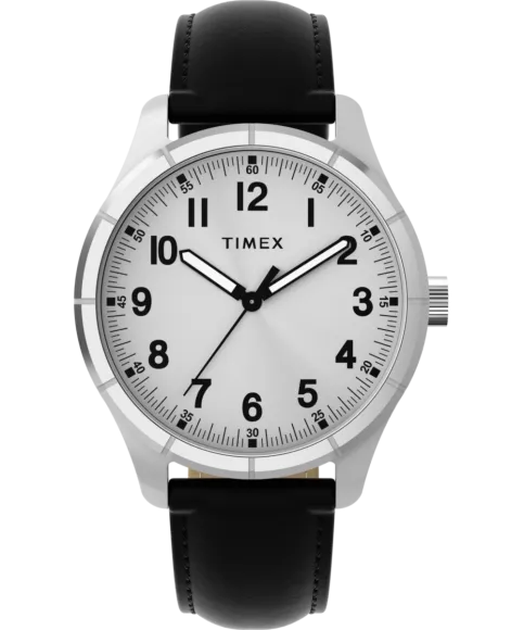 Ontdek de Timex® Analogue 'Main Street' Herenhorloge TW2Y16000, een perfecte combinatie van elegantie en functionaliteit, speciaal gemaakt voor de moderne man. Dit horloge belichaamt de geest van Timex, een merk met een rijke geschiedenis die teruggaat tot 1854, bekend om zijn innovatieve ontwerpen en toewijding aan precisie. Elk stuk is met uiterste zorgvuldigheid vervaardigd, zodat elke man een tijdpiece kan vinden dat past bij zijn stijl en behoeften. De Main Street-collectie weerkaatst klassiek vakmanschap en integreert moderne elementen die aantrekkelijk zijn voor de veeleisende dragers van vandaag. Timex heeft kwaliteitsmaterialen succesvol gecombineerd met een goed gevoel voor stijl, waardoor het een populaire keuze is voor heren die betrouwbaarheid en charme in hun accessoires waarderen. Het Timex® Analogue 'Main Street' Herenhorloge is ontworpen met een opvallende zilveren kast, gemaakt van duurzaam messing, met een diameter van 42mm die zorgt voor een krachtige uitstraling om de pols. De ronde wijzerplaat, beschermd door robuust mineraalglas, toont een stijlvolle zilveren dial, wat zorgt voor helderheid en verfijning. De quartzbeweging garandeert nauwkeurige tijdweergave, waardoor dit horloge zowel praktisch als stijlvol is. Dit tijdpiece heeft ook een comfortabele zwarte leren band die tot 21cm reikt, wat zorgt voor een veilige pasvorm en een mannelijke uitstraling aan elke outfit toevoegt. Met een waterbestendigheid van 3 bar is het Main Street-horloge geschikt voor dagelijks gebruik, zodat je zonder zorgen je actieve levensstijl kunt voortzetten. Met een gewicht van slechts 55 gram biedt het een licht gevoel terwijl het zijn indrukwekkende ontwerp tentoonstelt. Dit veelzijdige horloge is perfect voor zowel casual uitjes als formele evenementen, waardoor je er altijd op je best uitziet.
