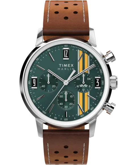 Timex® Chronograph 'Marlin' Horloge voor Mannen TW2W99100 weerspiegelt de erfgoed van het merk dat betrouwbare tijdpieces creëert die functionaliteit en stijl in balans brengen. Timex staat al sinds 1854 synoniem voor duurzaamheid en precisie, met een uitstekende Amerikaanse vakmanschap. Bekend om innovatieve ontwerpen en de mogelijkheid om de uitdagingen van het dagelijks leven te weerstaan, wil Timex horloges bieden die aansluiten bij actieve levensstijlen. De Marlin-collectie belichaamt dit ideaal, waarbij moderne esthetiek wordt gecombineerd met klassieke invloeden, aantrekkelijk voor de veeleisende man die zowel vorm als functie waardeert. Het Timex® Chronograph 'Marlin' Horloge voor Mannen is een perfecte mix van elegantie en praktische bruikbaarheid. Met een opvallende groene wijzerplaat biedt het horloge een levendig contrast met de glanzende zilveren roestvrijstalen kast. Met een diameter van 40mm is de ronde kast van substantiële maar comfortabele dikte van 13mm en zorgt ervoor dat het goed op de pols zit. Het mineraalglazen venster beschermt de tijdsaanduidingselementen, waardoor het zowel robuust als stijlvol is. Dit model wordt aangedreven door een precisie-quartzbeweging, bekend om zijn betrouwbaarheid en minimale onderhoudsvereisten. Het Marlin-horloge toont een klassieke chronograafweergave, waarmee je de tijd met precisie en stijl kunt meten. Bij de kast past een rijke bruine leren band van 21cm lang en 19mm breed, die is beveiligd met een stevige gesp. De band verbetert niet alleen de algehele esthetiek, maar is ook ontworpen voor comfort, waardoor dit horloge een uitstekende accessoire is voor zowel overdag als 's avonds. Met een waterbestendigheid van 5 bar kan de Marlin gemakkelijk omgaan met spetters en korte onderdompelingen. Dit horloge is niet alleen een accessoire; het is een statement stuk dat verfijning en functionaliteit belichaamt, ontworpen voor mannen die kwaliteit en vakmanschap waarderen in hun dagelijks leven.