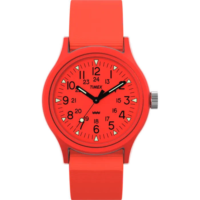 De Timex® Analogue 'Mk1' Mannenhorloge TW2W91300 is een opvallend tijdstuk dat functionaliteit en stijl naadloos combineert. Dit horloge, speciaal ontworpen voor de moderne man, vertegenwoordigt de essentie van Timex' toewijding aan kwaliteit en vakmanschap. Met zijn gedurfde oranje ontwerp straalt het een gevoel van avontuur uit, waardoor het de perfecte metgezel is voor degenen die durven te verkennen. Het is ontworpen om de ontberingen van het dagelijks leven te weerstaan, met een duurzame horlogekast van hars die zowel lichtgewicht als veerkrachtig is. De ronde kast van 36 mm herbergt een quartz uurwerk, wat zorgt voor nauwkeurige tijdsaanduiding, of je nu in een zakelijke vergadering bent of buiten de natuur verkent. De levendige oranje wijzerplaat, bedekt met robuust mineraalglas, is ontworpen voor maximale leesbaarheid en heeft duidelijke markeringen die het aflezen van de tijd vergemakkelijken. Een comfortabele stoffen band, met een lengte van 21 cm en een breedte van 18 mm, wikkelt zich stevig om je pols en wordt beveiligd met een betrouwbare gespsluiting, waardoor het horloge tijdens al je avonturen op zijn plaats blijft. Met een waterbestendigheidsclassificatie van 3 bar navigeert dit horloge moeiteloos door spetters en regen. De dikte van 12,5 mm zorgt voor een slanke uitstraling die bijzonder goed past onder een overhemd of op zichzelf kan opvallen. Dit tijdstuk is een combinatie van praktische functies en stijlvolle esthetiek, waardoor het een onmiskenbare keuze is voor modieuze mannen die kwaliteit en comfort waarderen. Elk detail is zorgvuldig vervaardigd om ervoor te zorgen dat het niet alleen duurzaam is, maar ook indruk maakt. De Timex® Analogue 'Mk1' biedt een frisse blik op je garderobe, verbetert je outfit en helpt je in contact te blijven met de tijd. Maak je klaar om elk moment met vertrouwen en stijl te omarmen.